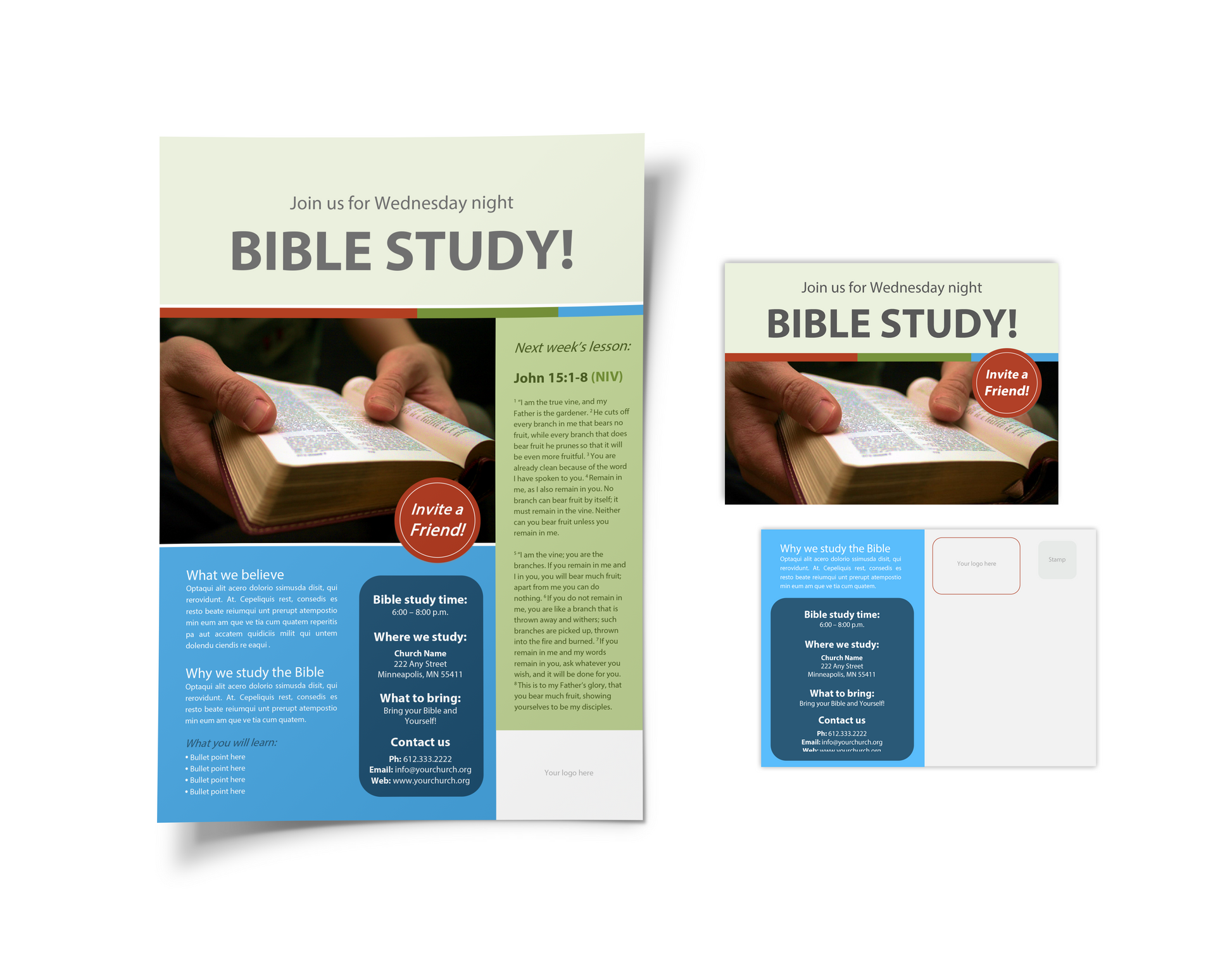 This Bible Study template bundle is ideal for organizations seeking to promote weekly gatherings to learn and grow together!