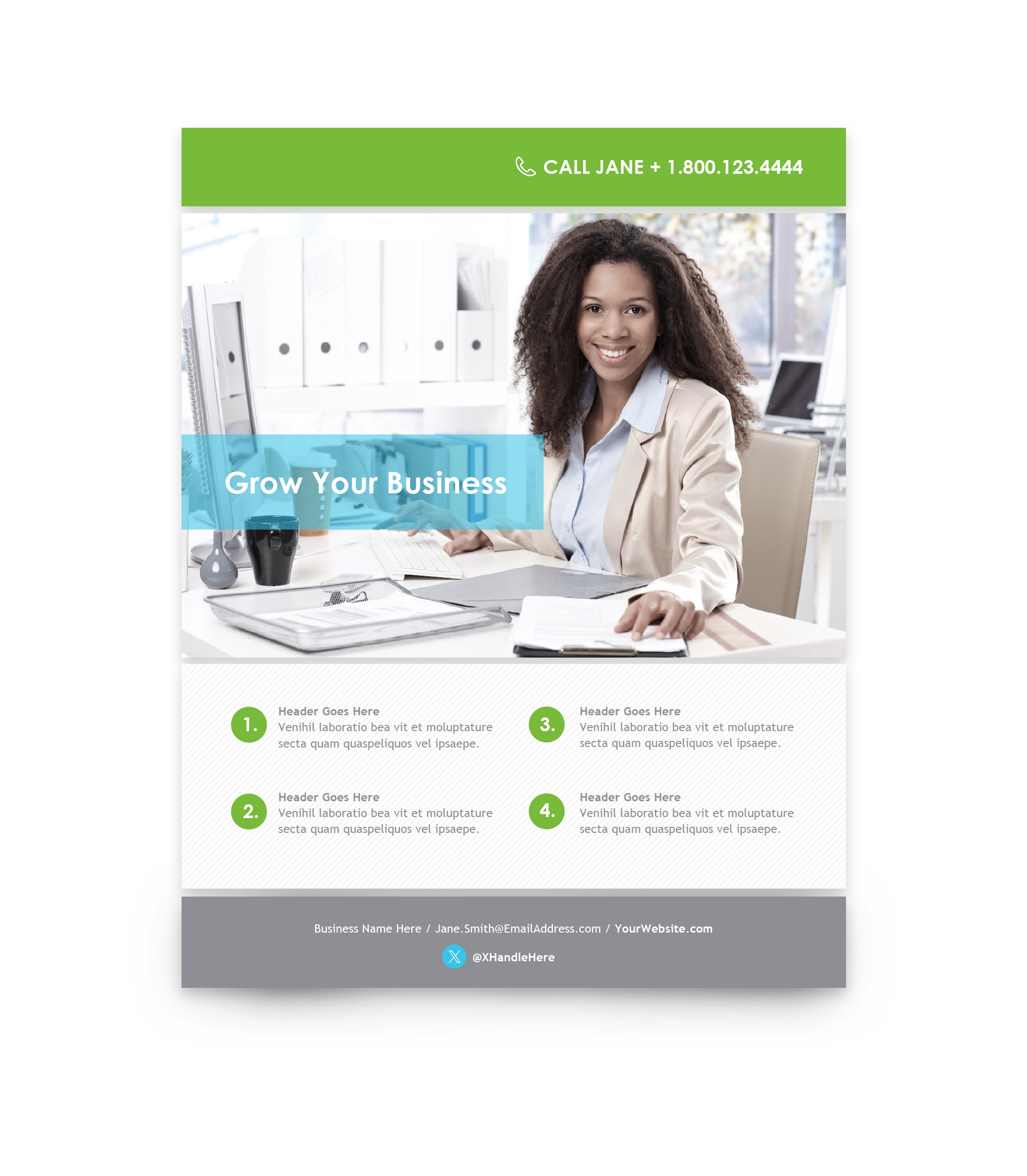 - 8.5 x 11 in. (1 page) fully-customizable flyer template