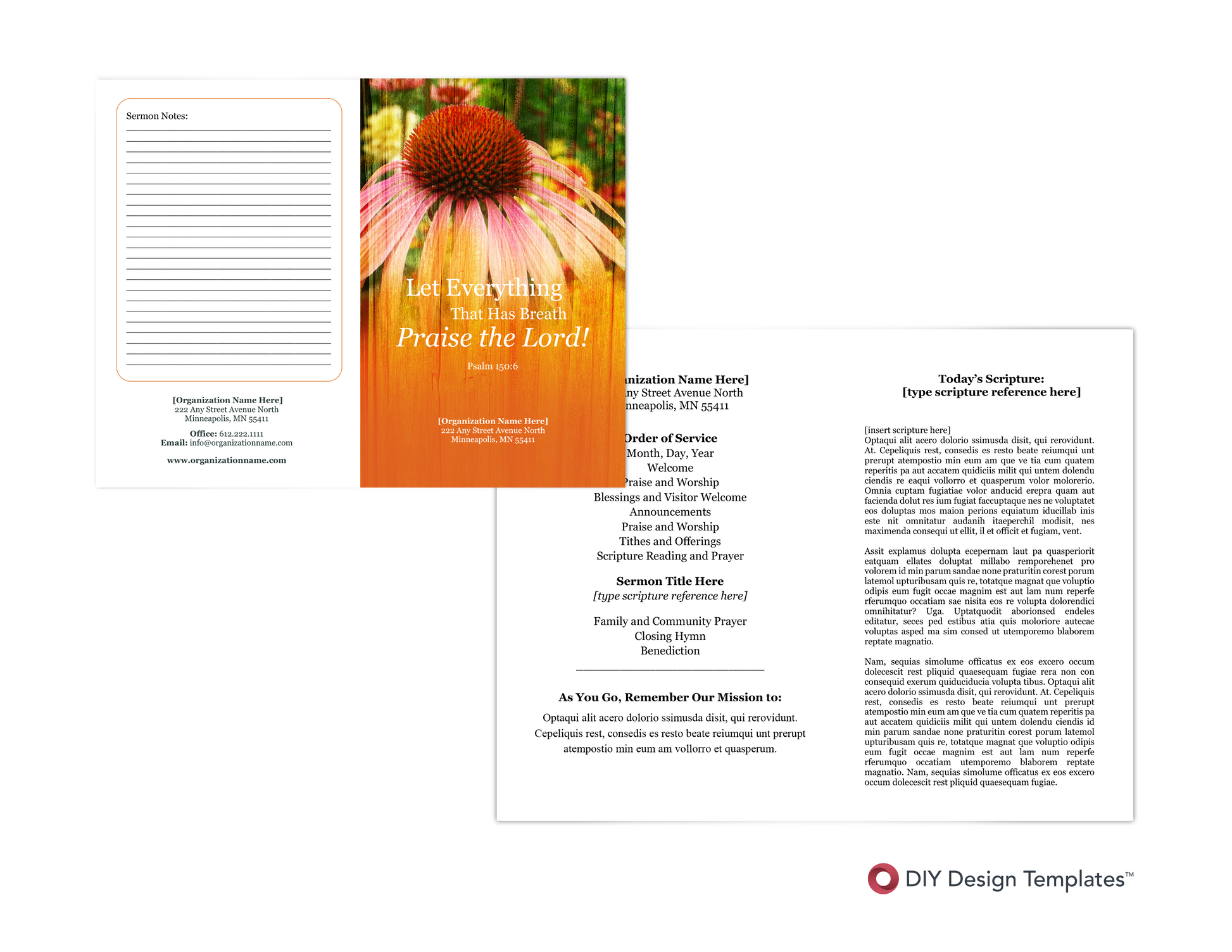 Enhance your congregation's experience with this customizable bulletin, featuring sections for notes, contact information and more!